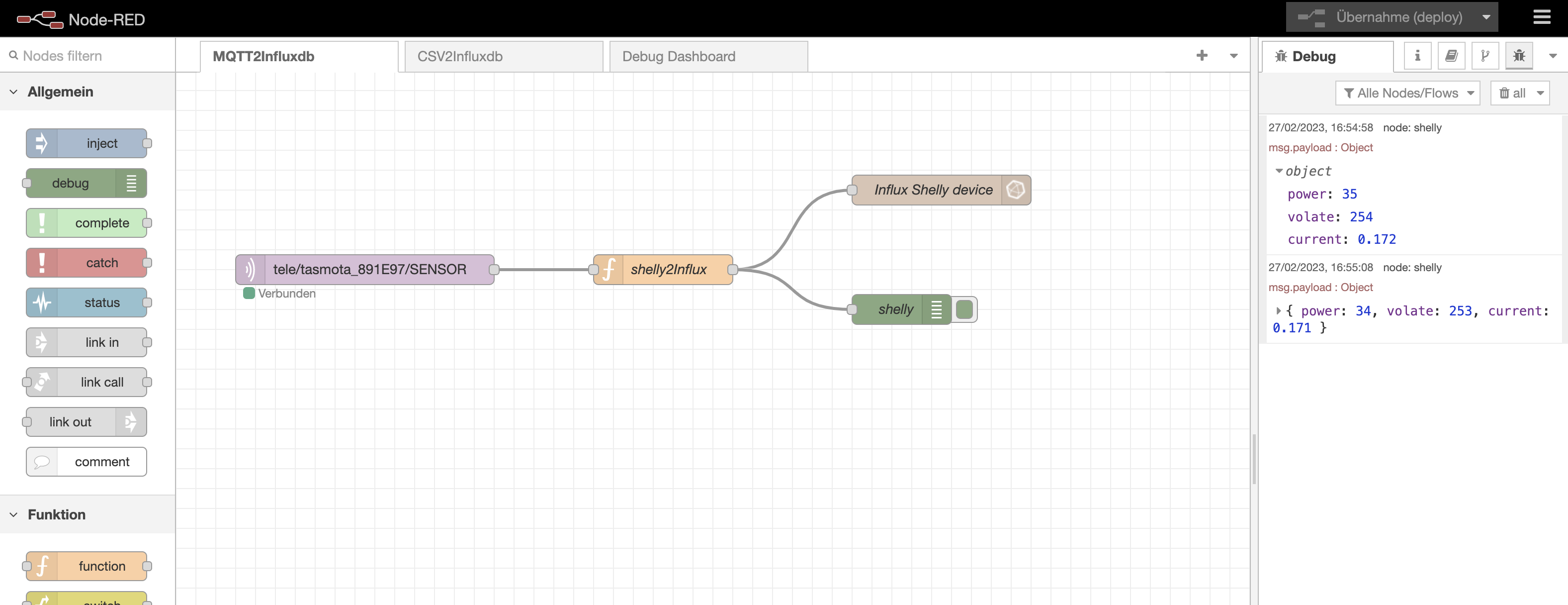 The payload will be stored in InfluxDB in the bucket "shelly".
