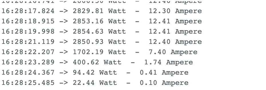16:28:21.119 -> 2850.93 Watt  -  12.40 Ampere
