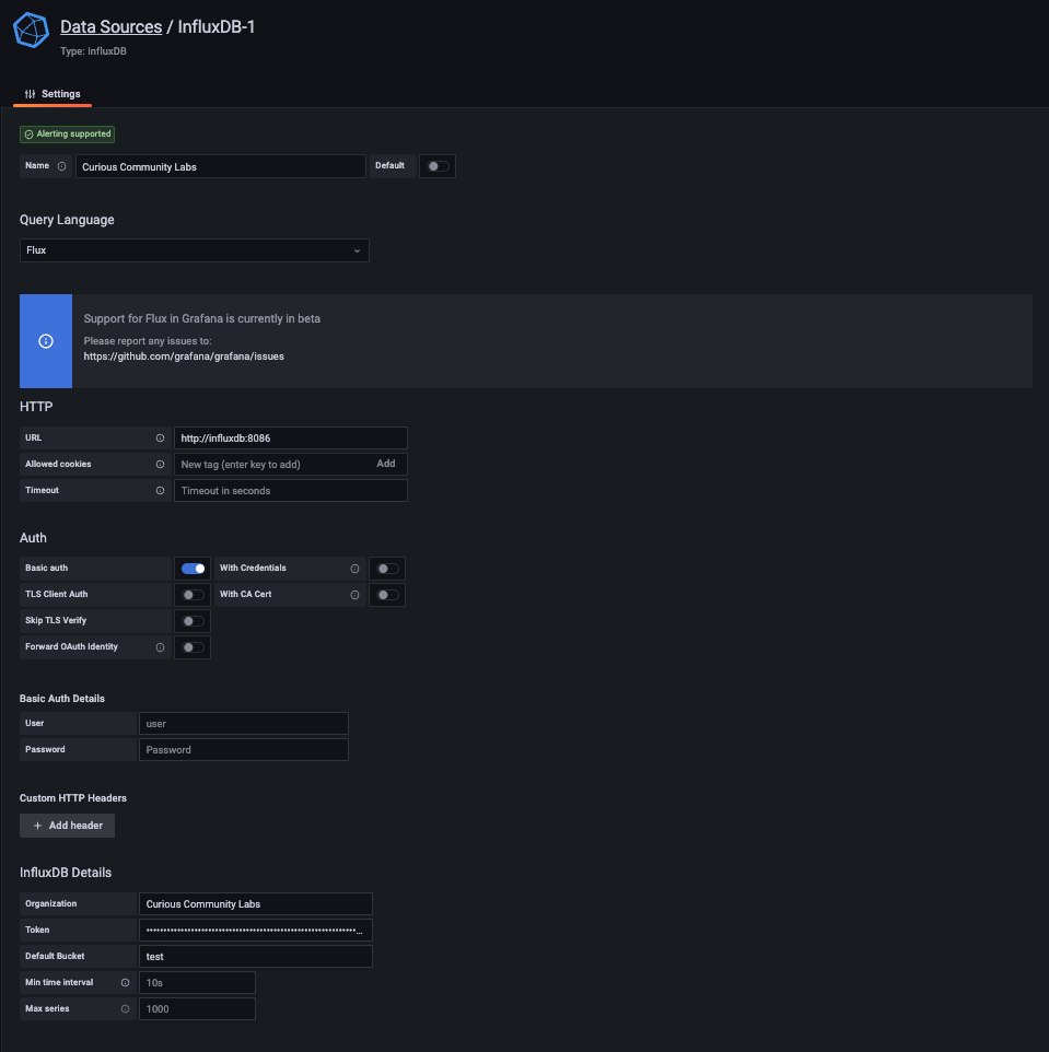 To connect Grafana to our Influx-DB, you have to create a tokenin Influx-DB.